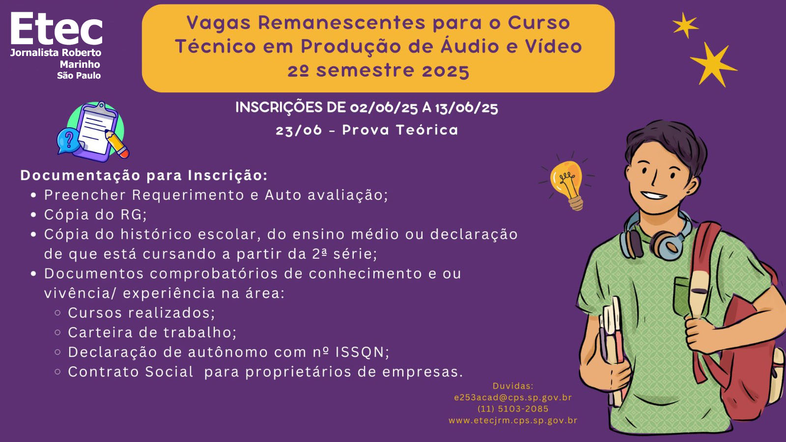 🎓 Se você está concluindo o Ensino Fundamental, então essa oportunidade é pra você! 🚀 A ETEC Jornalista Roberto Marinho está com as inscrições abertas para o Vestibulinho 2026! 📝 Se você quer estudar em […]